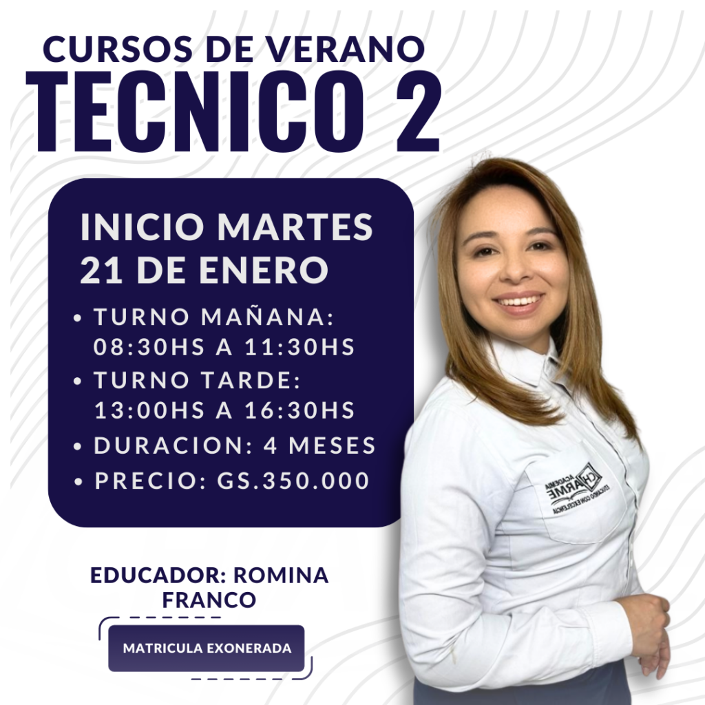 Costos: Nivel Inicial 250.000Gs / Nivel Tecnico 1 300.000Gs / Nivel Tecnico 2 350.000Gs / Nivel Tecnico Superior 400.000 / Nivel Master 500.000Gs